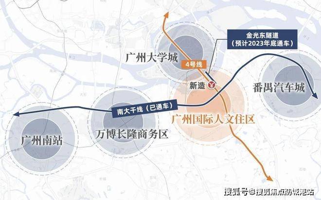 南大干线的全线通车,进一步强化了区域交通枢纽价值。南大干线作为广州南部城市快速交通走廊,连接番禺核心商业区与城市东部产业带。未来金光东隧道建成后,区域与珠江新城、琶洲商务区以及万博CBD之间的通行时间将明显缩短,使得创新城片区逐渐成为广州新一代城市生活副中心。城市通勤半径的压缩,是该项目价值增长的重要基础逻辑。
