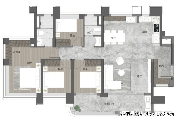建面约128㎡四房两厅两卫:改善型标杆,南北双阳台设计,主卧270°飘窗直视园林景观,实测冬至日日照超6小时。