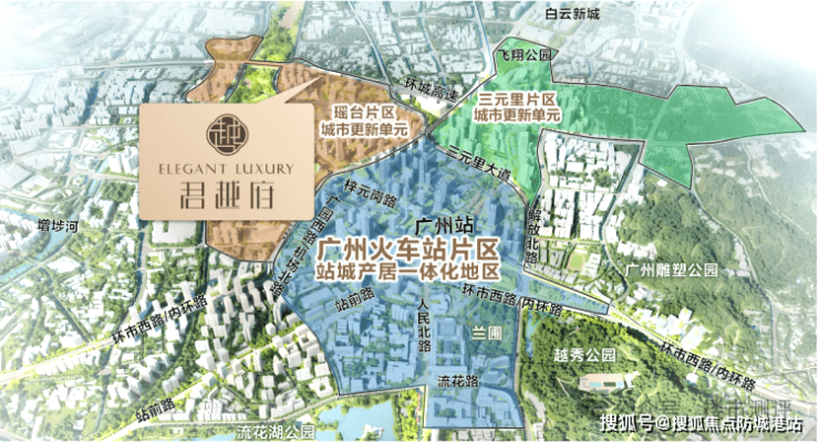 越秀君越府位于广州市中心,具体在三元里与广州火车站片区的旧改区域。这里不仅是广州的文化历史名区,也是经济发展和城市更新的活跃地带。作为广州枢纽的核心位置,越秀君越府紧邻两大TOD——广州火车站和广州白云站,这两大交通枢纽未来将实现“站、城、产、居”一体化建设,成为老城区焕发新活力的示范区域。由于其地理位置优越,越秀君越府未来的区域价值势必会随着周边配套设施的完善而水涨船高。