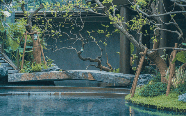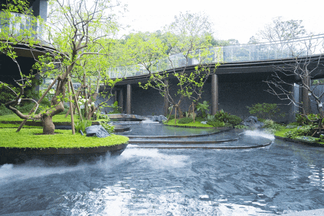 社区规划有约1.8万㎡庭院式双层立体山水园林,由21207块金属模块组成的约50米迎宾大门恢弘大气,园内时令花卉、奇石异景有机交织,还有星空连廊、近5米高的“半天云瀑”等景观节点,将岭南灵秀山涧搬进庭院深处,让业主仿佛置身于自然秘境之中。同时,园林内还定制了多元生活场景,包括健康跑道、约1500㎡山兔主题儿童乐园,架空层也被植入老年人活动区、邻里交流区等场景,满足不同年龄段业主的休闲娱乐需求。