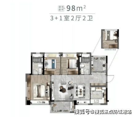 高性价比:总价100万元起即可购得三房单位,适合预算有限的刚需购房者。