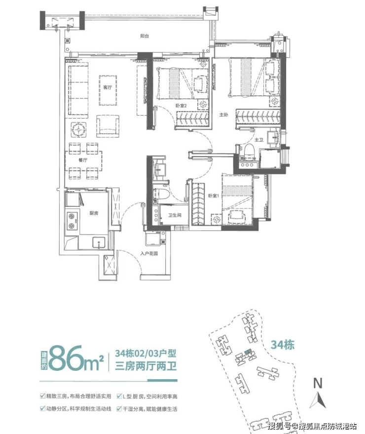 此次广地花园·观灏加推的新品34栋悦景楼座,面积段分别为86m²、96m²、100m²悦景三房,多面采景,三面望水,通透采光,充分利用户型的每一寸肌理,以有限的生活空间焕发更多生活灵感,打造全方位人性化居所。