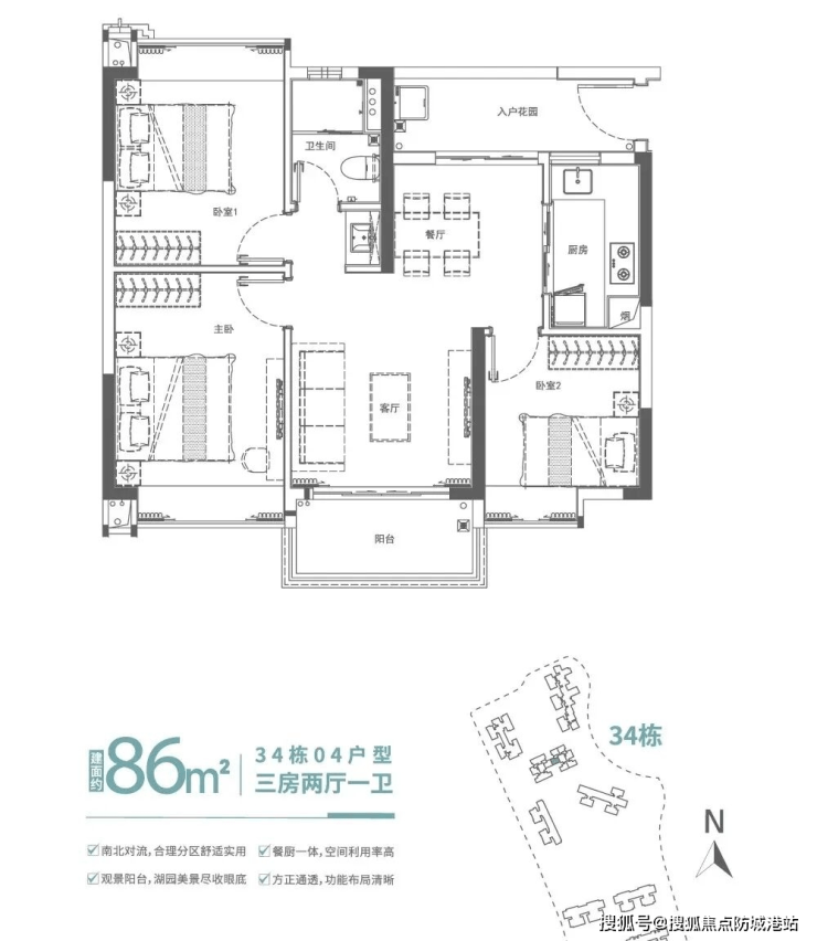 建面约86㎡南北通透三房,南北对流,采光通透,空间视野开阔,布局方正舒适实用,客厅直通南向阳台,引更多清风和阳光入室,缔造质感生活。