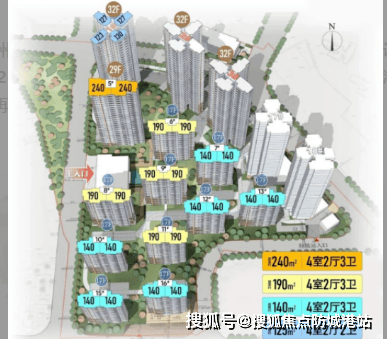 对于追求极致生活品质的高净值人群,项目提供了190平方米和240平方米的大平层产品。190平方米四房三卫户型,层高提升至3.1米,空间感更加通透。34平方米的超大宽厅搭配全景飘窗,视野开阔,可俯瞰整个园林乃至远处的白云山景,居住体验感拉满。该户型同样采用2梯2户配置,私密性与尊贵感并存。