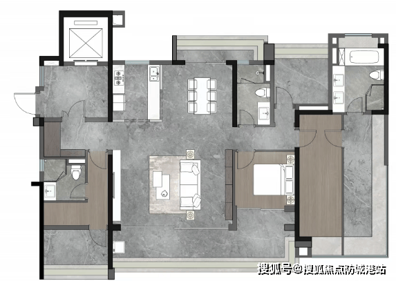 「臻享宽境」LDKB+X通透宽厅,联动约5.9米景观阳台,随心切换;