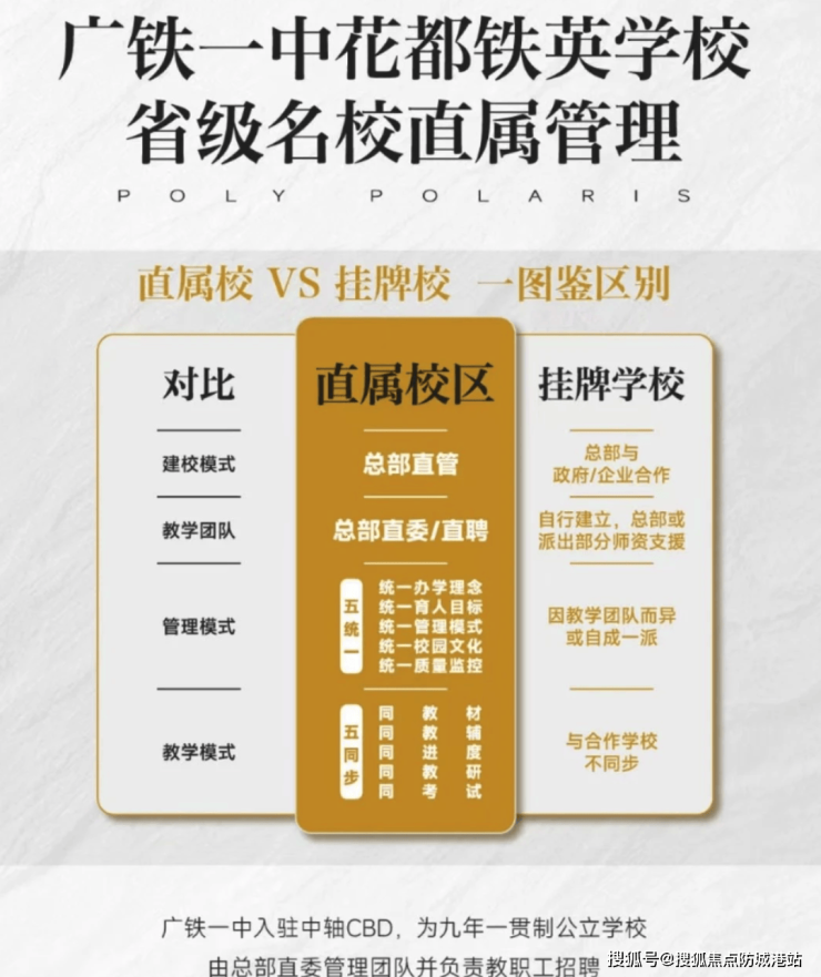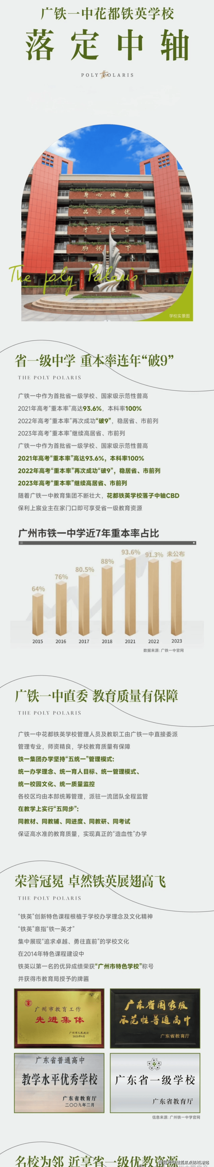 广州市第六中学花都校区是 54 班完全中学,已纳入首批招生范围;广铁一中花都铁英学校直线距离项目约 500 米,是省一级 75 班九年一贯制公立学校。