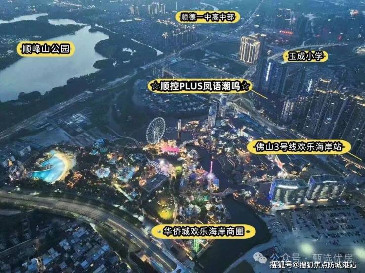 顺控 PLUS・凤语潮鸣雄踞佛山顺德大良东区核心板块,地处顺峰山下、欢乐海岸 PLUS 旁,占据顺德主城黄金三角圈核心席位,是大良高端居住板块的核心载体。大良作为顺德行政、文化、商业中心,历经多年发展,已形成成熟的城市界面与浓厚的人文底蕴,东区更是汇聚城市顶级资源,成为顺德顶豪圈层聚居地,地段价值不可复制。