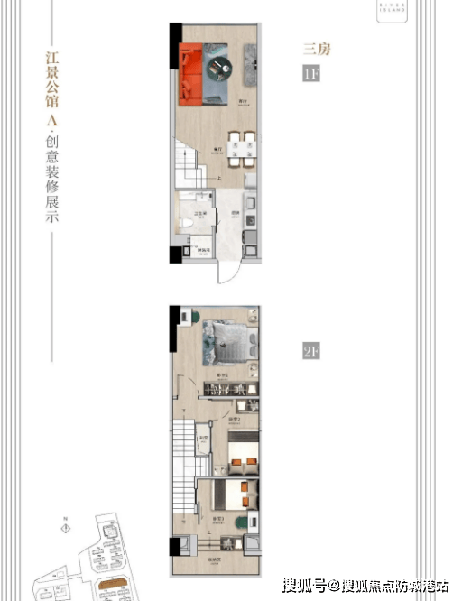 该户型为 LOFT 产品,层高约 4.5 米,可实现挑空二房、双钥匙、三房等多种创意装修方案。户型格局周正,南北通透,采光通风俱佳,推窗即可欣赏一线江景。一层可规划为客厅、餐厅、厨房等公共区域,满足日常起居与接待需求;二层为私密休息区,可设置 2-3 个卧室,适配三口之家或多成员居住。双钥匙设计则可实现 “一层自住、一层出租” 或 “双套出租”,投资收益更可观。