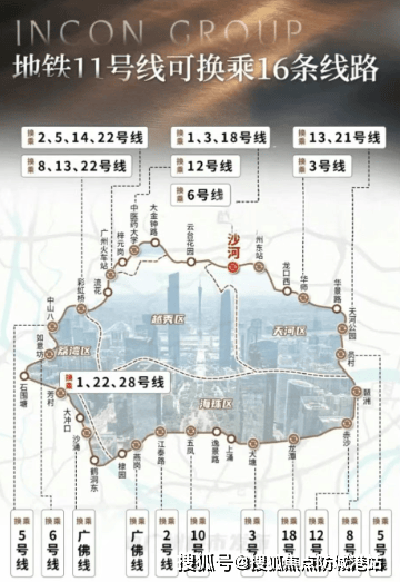 该项目紧邻三条地铁线路(5号线、6号线、11号线),通过便捷的轨道交通网络,可以轻松抵达广州的各个角落。特别是11号线作为广州首条大环线,极大地提升了区域内的通达性,实现了“15分钟生活圈”。