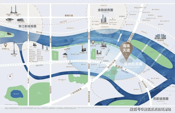招商保利海珠天珺位于海珠区琶洲板块核心位置,紧邻珠江南岸,地处广州最活跃的CBD集群之一——“珠金琶”黄金三角区。该区域汇聚琶洲、珠江新城及金融城三大核心商务区,是广州未来十年发展的重点区域。项目周边江景资源丰富,北向可眺金融城高楼,南向一线珠江景观尽收眼底。半开放式LOFT设计进一步强化了景观体验,使每一户都能享受开阔视野和自然采光。