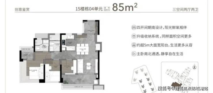 126平米四房两卫:阳台可以打通,实现三面采光,四个卧室各有特色,主卧南北对流,视野开阔。