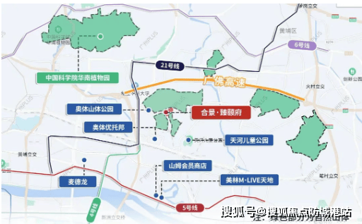 合景臻颐府坐落于天河区智谷板块南部,以“新一代信息技术”为主导,重点布局5G、高端软件、工业软件、物联网、人工智能、虚拟现实等IAB产业方向。该区域已聚集了网易总部(一期已入驻,二期建设中)、中国移动南方基地、太平洋网络、国际软件产业基地等近50家企业总部以及约2,500多家高科技企业,总投资额约800亿元,预计年产值规模约1,100亿元。此外,项目还紧邻珠江新城、金融城双CBD,并与约3300亩的天河“绿肺”奥体东山体公园和约243万㎡的大观公园为邻,提供了得天独厚的自然景观资源。