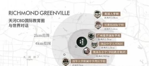 中学:执信中学天河校区、清华大学附属中学湾区学校、华师附外美式高中、广州奥林匹克中学、华南师范大学附属外国语学校,为学生提供多样化的中学选择。