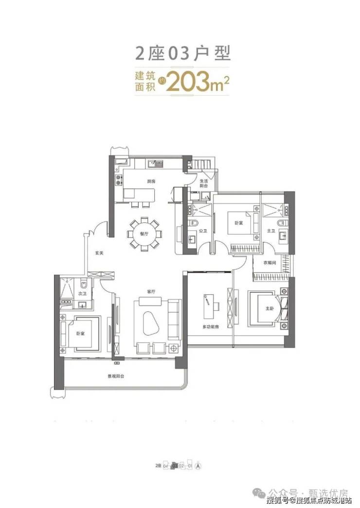 2座03户型 建面约203㎡|南北通透,方正户型,奢享百米楼距,俯瞰中轴岭南园林