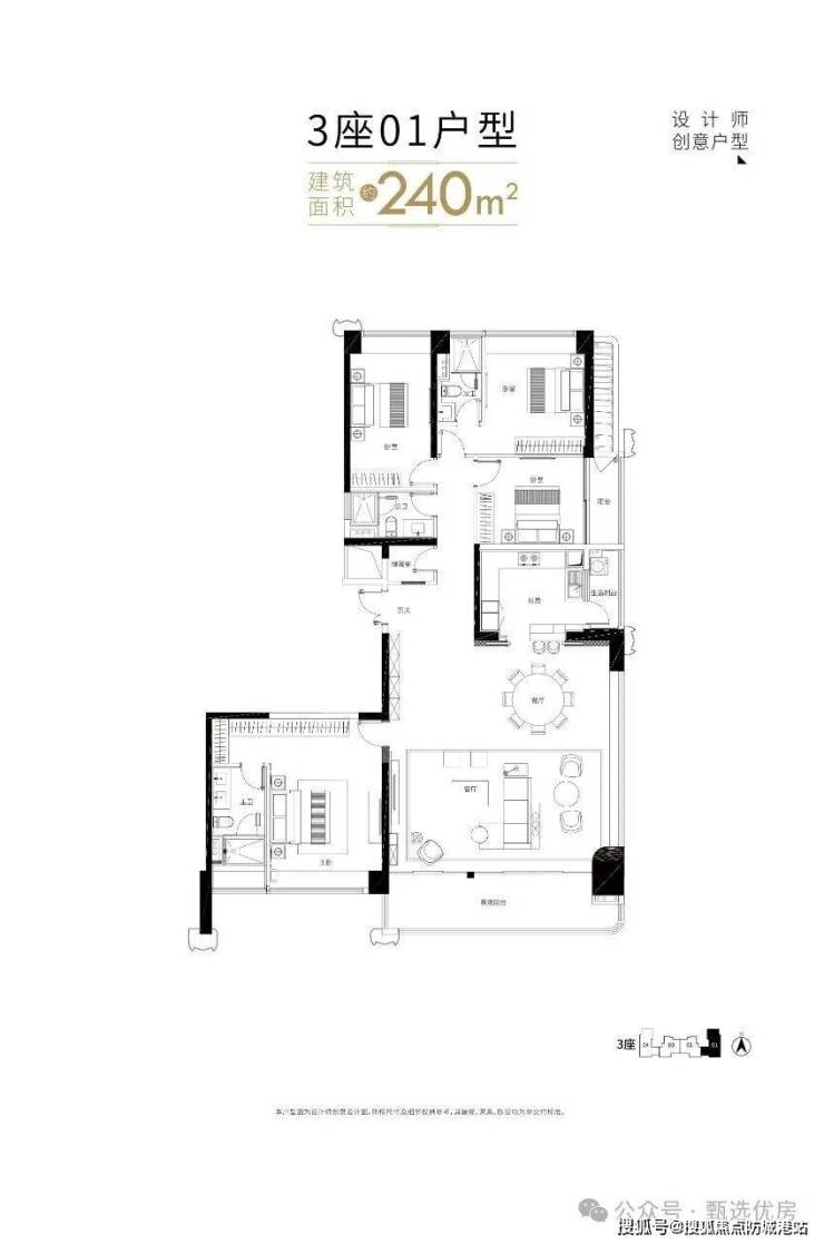 3座01户型 建面约240㎡|270°L型巨幕视野,奢享百米楼距,俯瞰中轴岭南园林