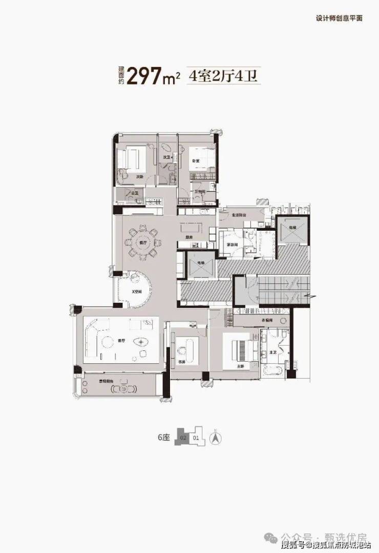 6座02户型 建面约297㎡|三面采光全景视野,三梯两户尊贵归家仪式