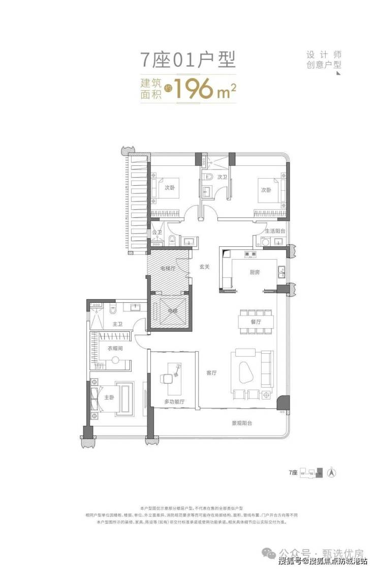 7座01户型 建面约196㎡丨270°L型巨幕视野,单边位无遮挡,奢享百米楼距