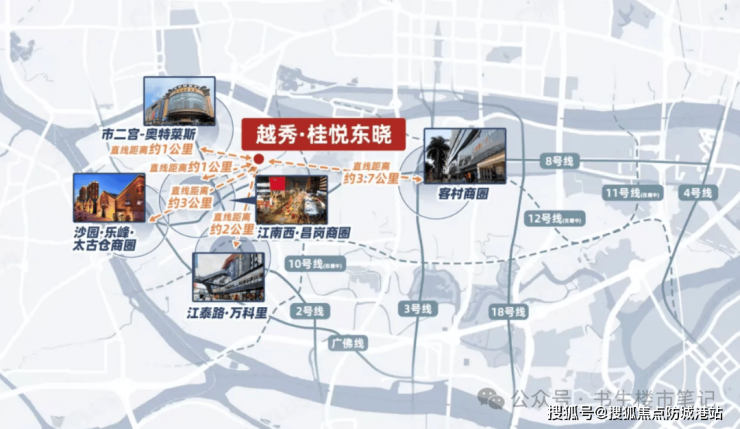 关于交通通勤,许多市区楼盘面临拥堵或地铁距离过远的问题。越秀桂悦东晓占据了得天独厚的交通优势,真正的三地铁交汇枢纽。项目步行约8分钟即可到达地铁8号线晓港站,轻松畅达全城;周边还有地铁2号线江南西站和在建的10号线滨江东路站,三轨交汇,瞬达越秀、天河核心区。自驾方面,项目紧邻海印桥,一桥直达东山,五大主干道串联主城,距离珠江新城、琶洲仅约8公里,车程约20分钟。此外,家门口约60米处即是海印桥南公交站,超20条公交线路接驳各区,出行极为便捷。我们承诺,随着路网的不断完善,您的出行将更加顺畅自如,具体的自驾路线与通勤时长测试数据,欢迎致电400-078-0012由置业顾问为您详细规划。