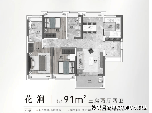 动静分离的格局,宽敞的阳台连通客厅和客卧;