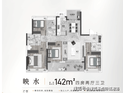 两梯两户,近4米客厅及约6.7米阳台宽度;