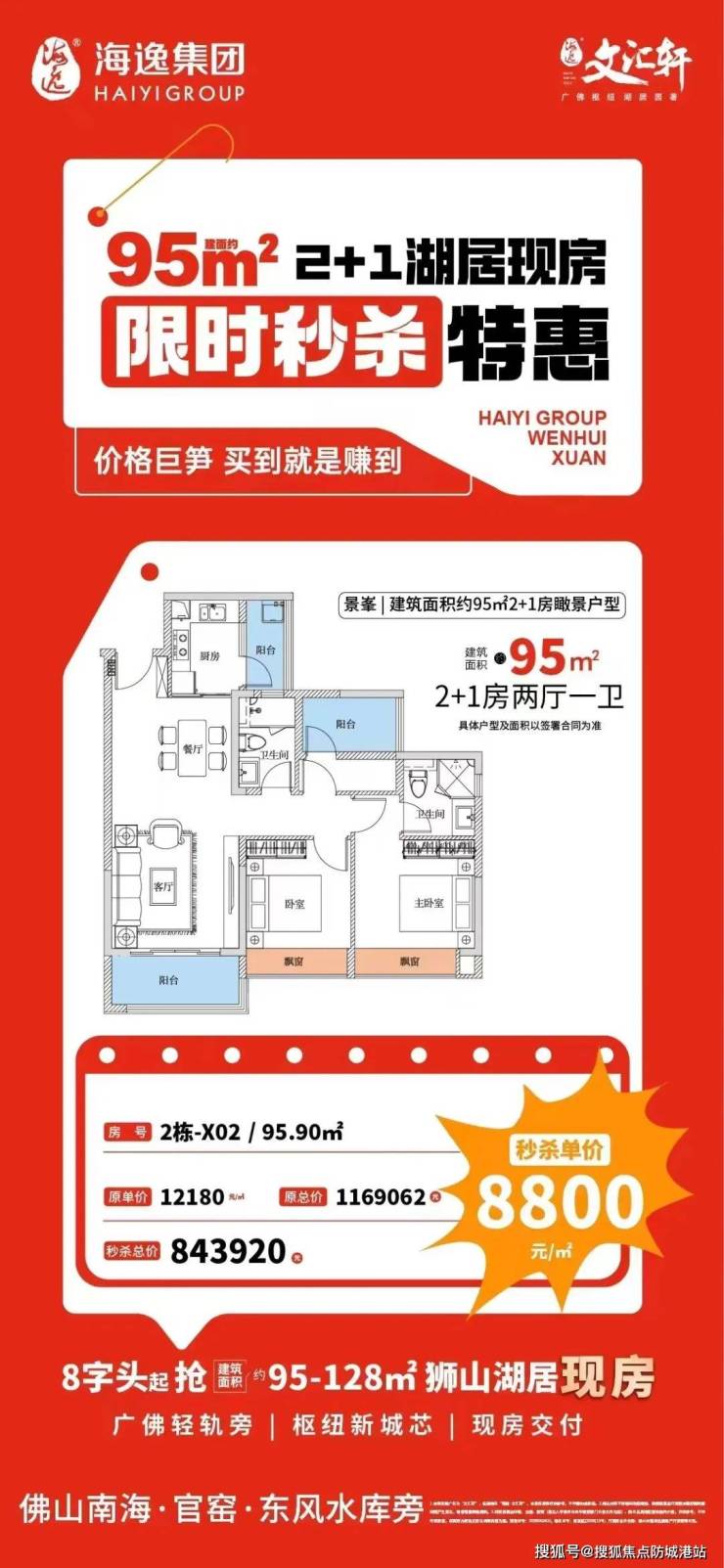 总占地面积&总建筑面积:1.6万㎡&6.3万㎡ 目前在售:1栋、6栋 21层高 物业公司:海逸物业 管理费:2.7元/㎡ 车位总数:共459个,地下414个,地上45个 总户数:405户 容 积 率:3 绿 化 率:63% 交楼时间:1栋精装(2023/4/30) 6栋毛坯(2022/5/30) 一、项目简介海逸文汇轩,择址广佛北区枢纽—狮山官窑板块,为海逸集团精耕佛山的新中式人居标杆作品。海逸集团18载匠心耕耘,更懂佛山人居需求。以市场罕见一字楼排布,户户观景的南向布局,构筑健康舒居人居,813席新中式藏品,礼献广佛。