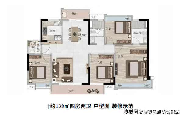 项目提供了多种精心设计的户型供购房者选择,包括约88㎡至约138㎡的三房至四房单位。所有户型均注重空间利用率和居住舒适度,如南北通透的设计、阔绰主套、步入式卫生间等细节处理,旨在为住户创造一个温馨舒适的家。特别是部分户型还配备了超大阳台和转角飘窗,进一步增强了居住体验。