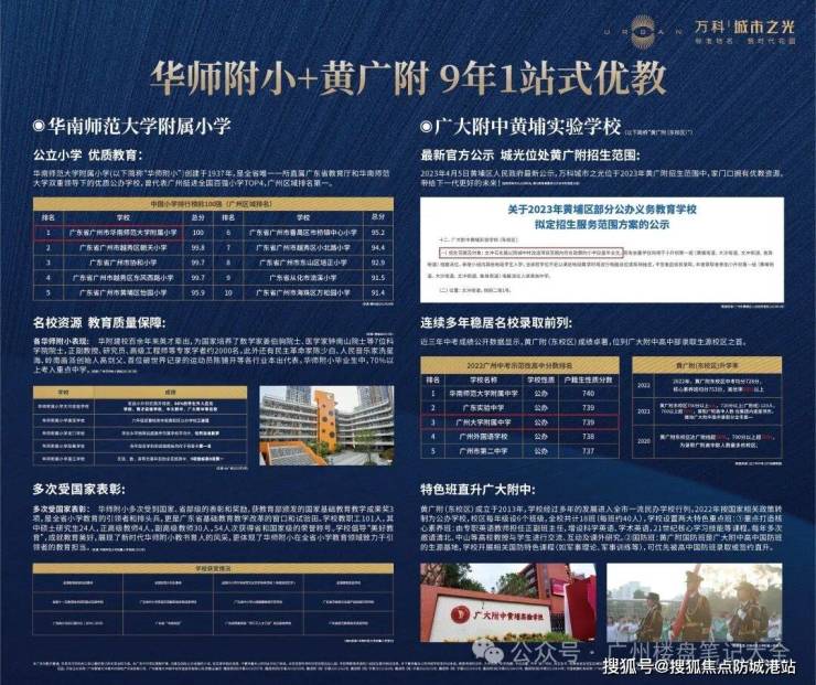 A:项目配套1所华师附小(已开学),规划2所幼儿园(1所2023年9月开学)。周边7所小学(非项目配套学校):文冲小学、怡园小学、下沙小学、石化小学、中黄外国语小学、万科城市花园小学、怡瑞小学。周边4所中学:广大附中黄埔实验学校、石化中学、中大附属外国语实验中学、港湾中学。十二年优质教育体系,学位确定性高。