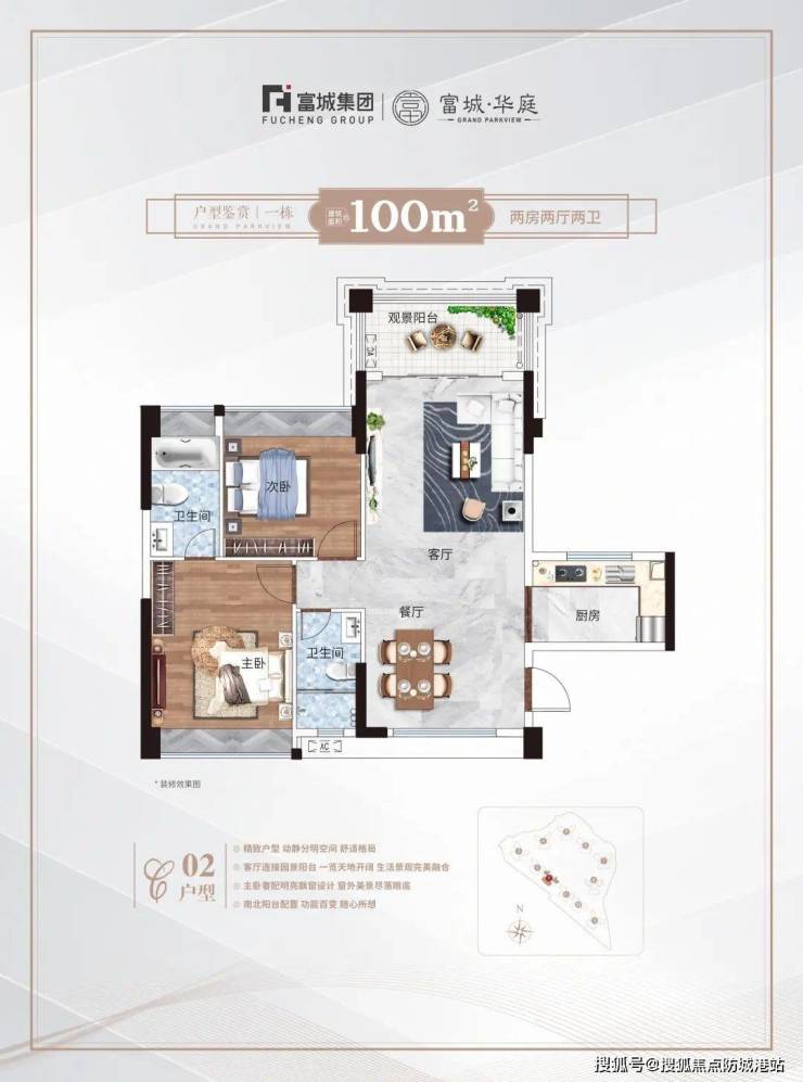富城·华庭主力户型面积段为100-156平方米,空间设计奢阔舒适,全部三房配置起的纯粹高端居住社区。每个户型均采用南北通透设计,三方采光,视野开阔,确保居民能够享受到中心园林景观的最大化体验。