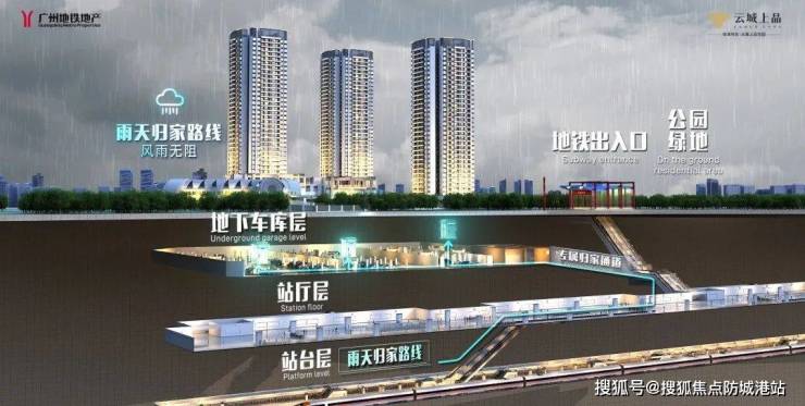 项目与其他TOD项目最大的区别在于:规划了市面上地铁盘所少有的专属归家通道,与地铁站厅无缝衔接;业主通过专属通道抵达地铁站,享受无日晒无风雨出行体验。