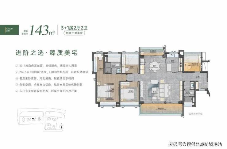 户型面积:建面约72-105㎡3+1房、110-143㎡阔境臻品