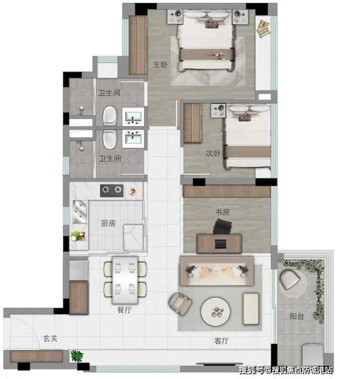 83㎡三房两卫:带主套舒适三房,提供了更为宽敞的居住体验。