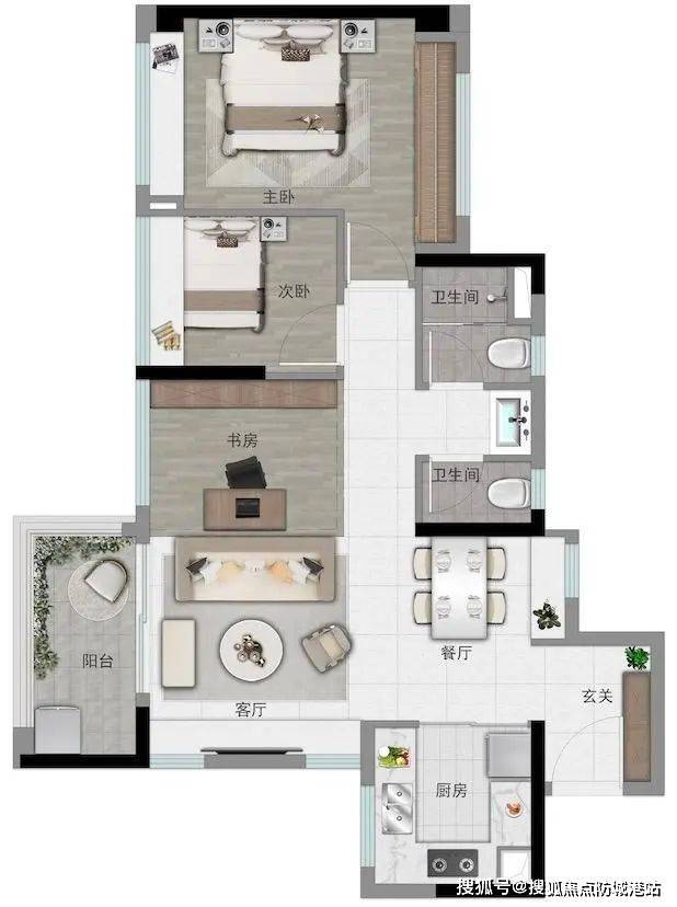 73㎡三空间:极致灵动三房设计,满足小家庭的基本需求。