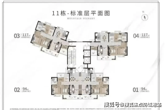 117㎡户型:该户型为墅级尺度创新N+1四房,配备双观景阳台,能同时欣赏山景和园景,景观视野“唯我独尊”。客厅连接约6.2米阔景阳台,空间通透开阔,呈现多彩生活空间。户型为正南北通设计,通风采光效果极佳,四房开间朝阳,能让每个房间都享受到充足的阳光。