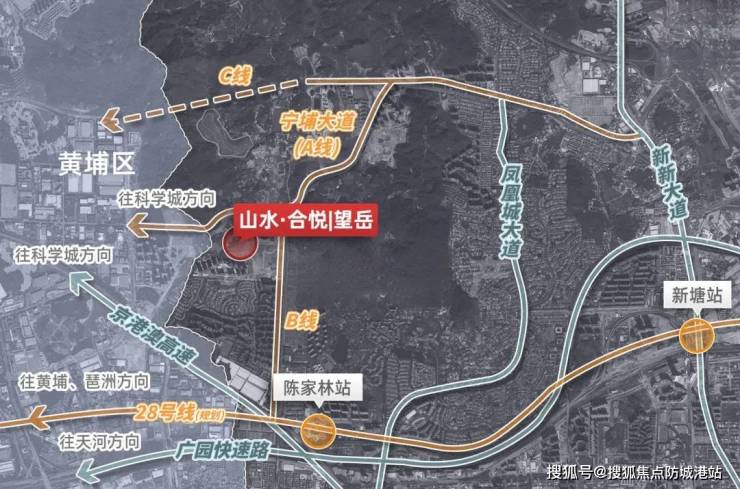 A3:项目周边规划有地铁28号线(佛穗莞城际)陈家林路站,距离项目约900米。根据最新公示信息,该线路佛山鹭洲至广州新塘段拟近期实施,总工期约5年半。目前项目门口的宁埔大道已开通,自驾出行十分便捷,10-15分钟可到达科学城,30-40分钟可到达天河、金融城等核心区域;周边5公里内还有地铁13号线沙村站,4站可到黄埔,9站可到天河。