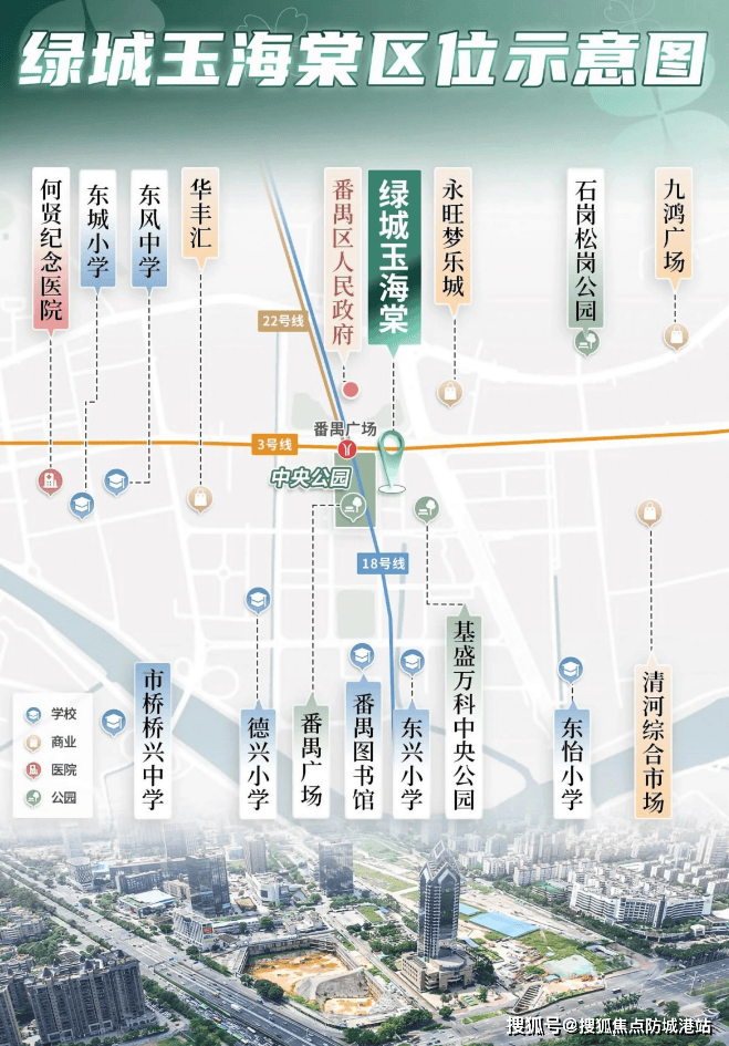 绿城玉海棠地处番禺广场地铁站E出口,是18号线、22号线、3号线及3号线东延段等多条地铁线路交汇处,形成了便捷的“黄金链”交通枢纽。其中,18号线和22号线更是全国最快的地铁线之一,时速高达160公里/小时,使得通勤更加高效便捷。