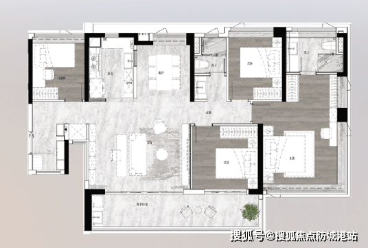 高得房率:通过飘窗、阳台半赠送,得房率达82-85%;