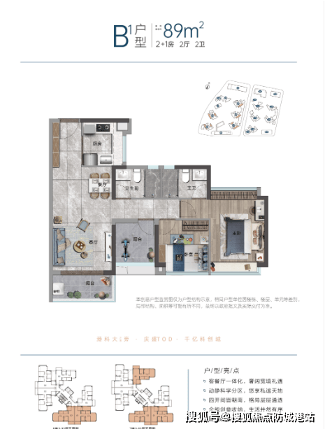招商湾区1872提供的户型面积从79㎡到105㎡不等,包括三房两厅两卫和四房两厅两卫等多种布局。每个户型都经过精心设计,以最大化利用空间,提高居住舒适度。特别是79㎡的小户型,尽管面积不大,但依然设计了两个卫生间,非常适合小家庭或首次置业者。