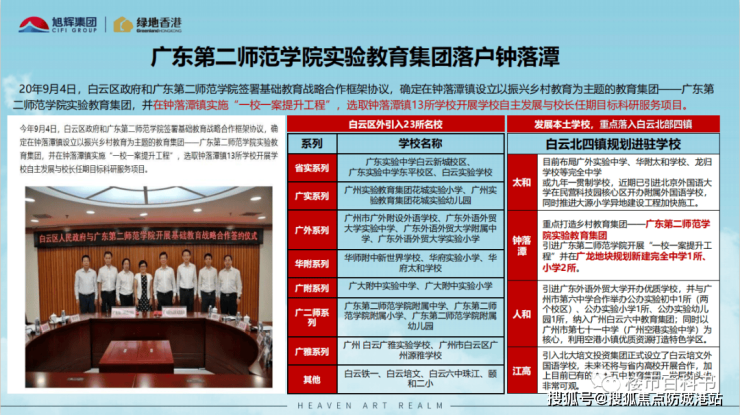 除了项目南面教育用地、中小学用地将配建幼儿园、30班小学、36班中学外,附近还有广东第二师范学院实验幼儿园熙悦园区、广东第二师范学院实验中学、广州大同中学等。同时,附近钟落潭镇高职园区(广州第二大学城)规划聚集13所院校,教育氛围浓厚。