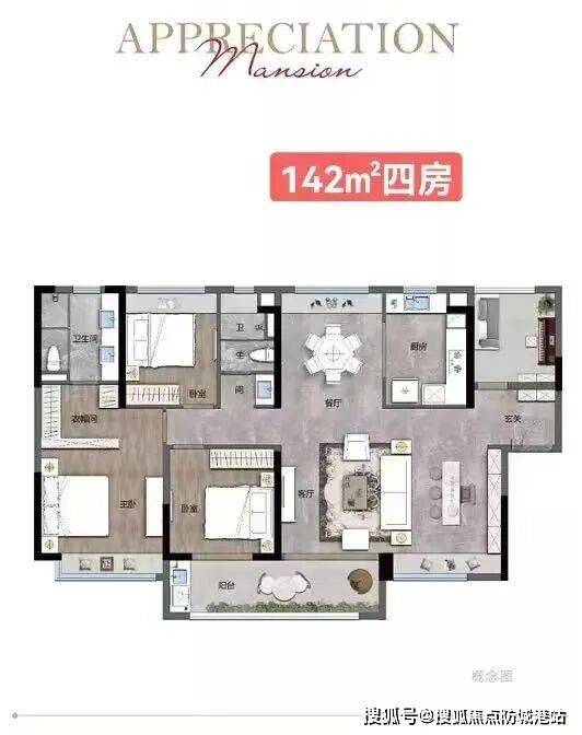 建面约142㎡ 改善四房/五房 阔绰空间 多功能适配