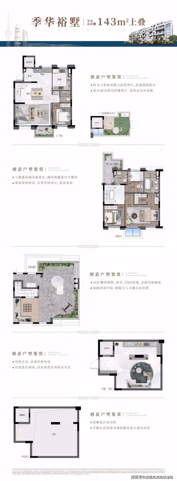 上叠配备专属电梯与约60㎡星空露台,专属电梯保障了业主的出行便捷性与私密性,星空露台可打造为休闲区、烧烤区、养花区等,业主可在露台上欣赏风景、休闲放松,享受惬意的居住时光[superscript:7]。叠墅内部空间布局合理,功能分区明确,客厅、餐厅、厨房等公共空间宽敞明亮,卧室空间阔绰,配备独立卫生间与衣帽间,满足业主的高品质居住需求;同时,叠墅赠送面积丰富,实得面积高,空间利用率极高,让业主花更少的钱,享受更大的居住空间[superscript:1][superscript:7]。