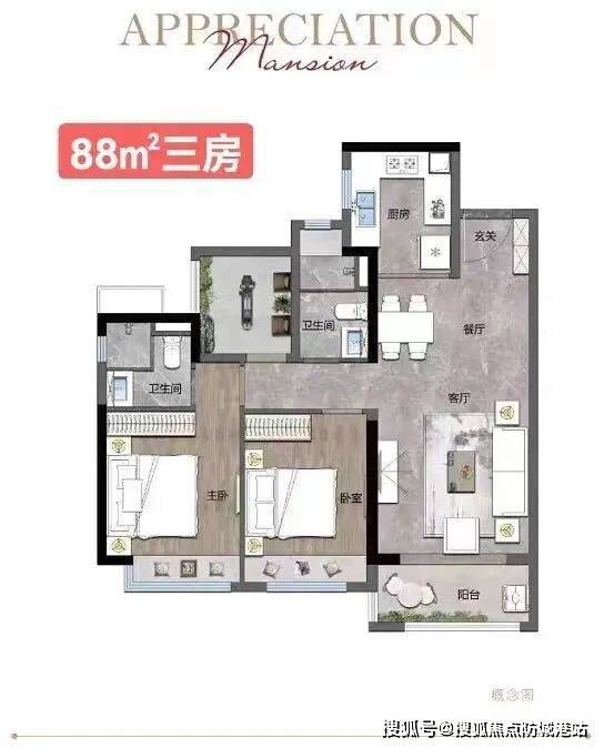 建面约88㎡ 刚需小三房 紧凑实用 适配单身/小家庭