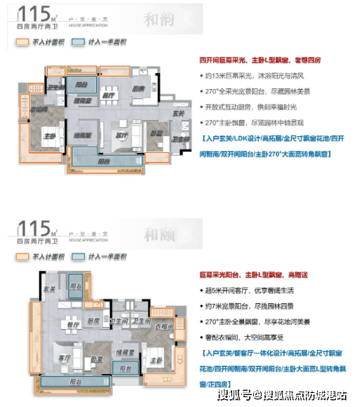 保利花语和岸主打多种户型,包括86平方米、115平方米、136平方米和14日讯平方米的四房至五房户型。所有户型均达到或超过100%使用率,特别是142平方米户型,采用2梯2户+独梯入户的设计,确保私密性和舒适度。