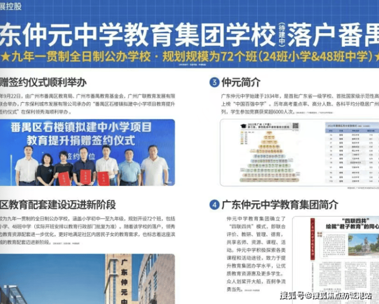 A: 项目已正式划入广东仲元中学教育集团直属管理的九年一贯制公立学校学区范围,规划开设72班(24班小学+48班初中),该校已于2025年9月正式开学。仲元中学是番禺顶尖名校,高考重点率与本科率稳居省市前列。根据公立学校招生政策,人户一致优先,不存在楼盘先后顺序安排入读的问题,只要符合政策要求,均可正常入读。