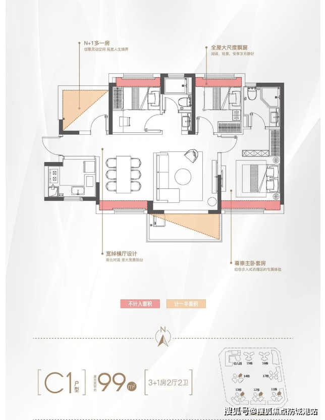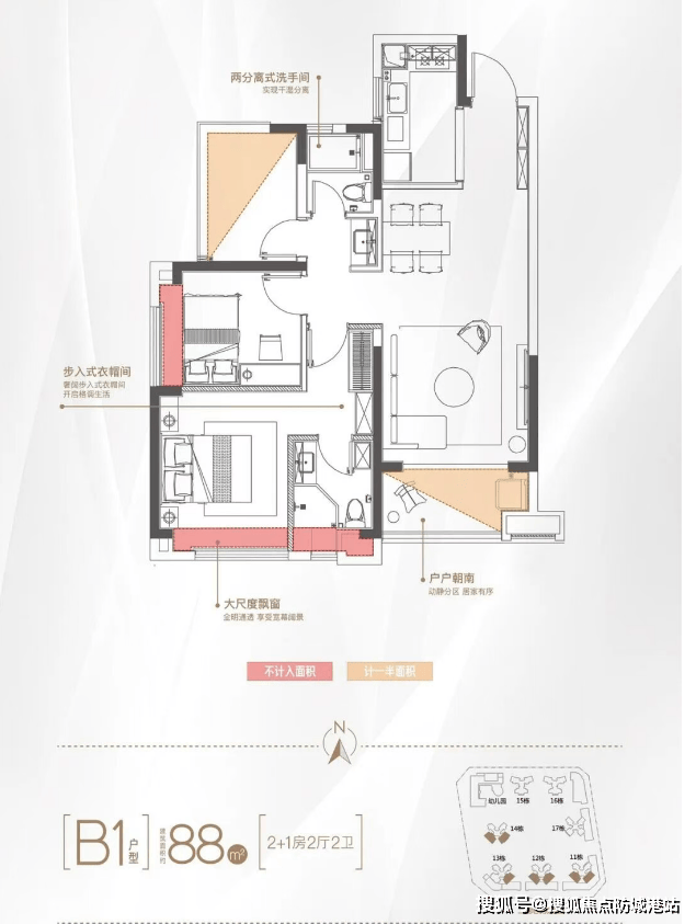 功能空间:98平方米户型增设独立玄关和家政间,128平方米户型实现南北双阳台户型介绍,满足多样需求