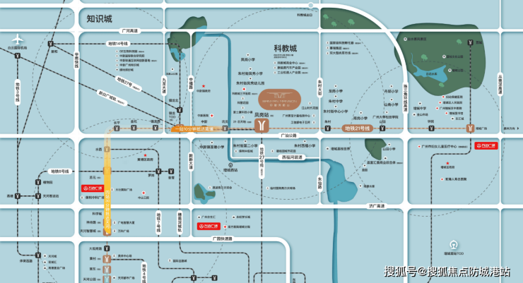 项目最大的交通优势在于步行约600米即达地铁21号线凤岗站。21号线作为广州东部的“黄金走廊”,快线模式下一站即可抵达镇龙站,无缝换乘穗莞深城际与新白广城际,北可至白云机场,南可直达东莞、深圳,极大拓展了生活半径。