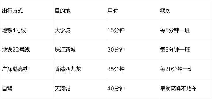 地铁:4号线5站到大学城,22号线30分钟直达珠江新城