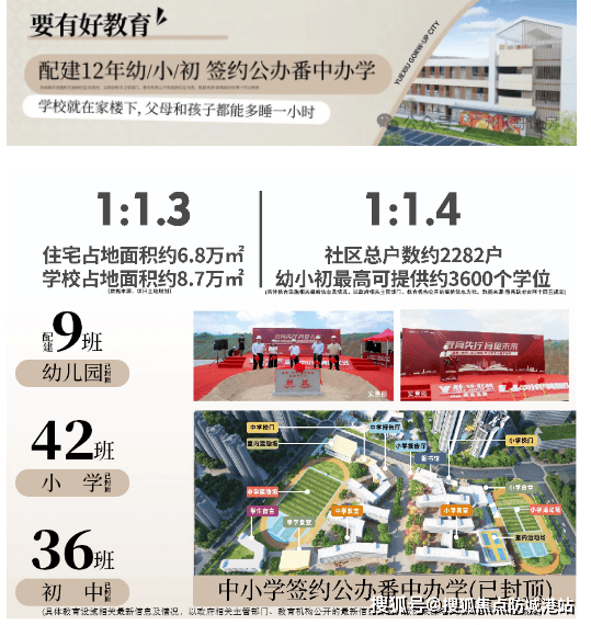 Q2:项目配建的学校入学条件是什么,是否能确保业主子女入学? A2:项目配建的九年一贯制学校为公办学校,招生对象主要面向小区业主子女,具体入学条件需按照当年番禺区教育局发布的招生政策执行。学校学位数量达3600个,远超整盘户数,能最大程度保障业主子女入学需求,且已正式开学,师资由番禺中学集团调配。