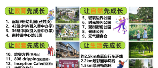 中小学教育方面,项目配建42班小学与36班初中,总计提供3600个学位,学位数量远超整盘业主户数,能充分保障社区业主子女的入学需求。更为重磅的是,项目已成功引进公办名校番禺中学教育集团办学,目前学校已正式开学,师资力量由番禺中学本校抽调优秀教师组成,教学质量与教学管理均有保障,为孩子的学业发展奠定坚实基础。