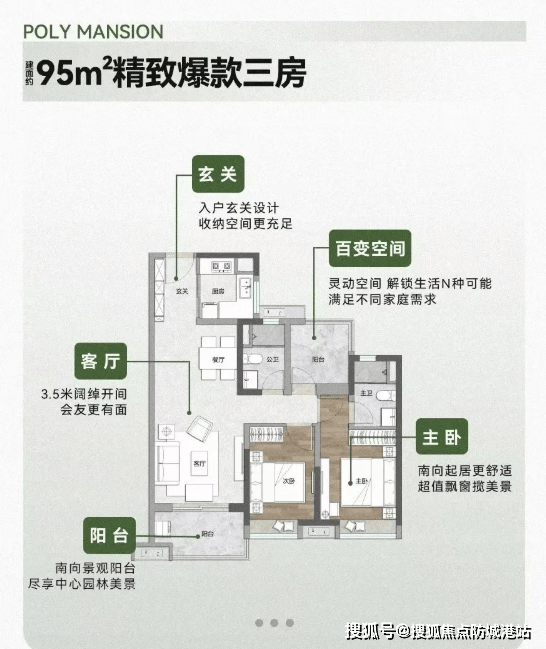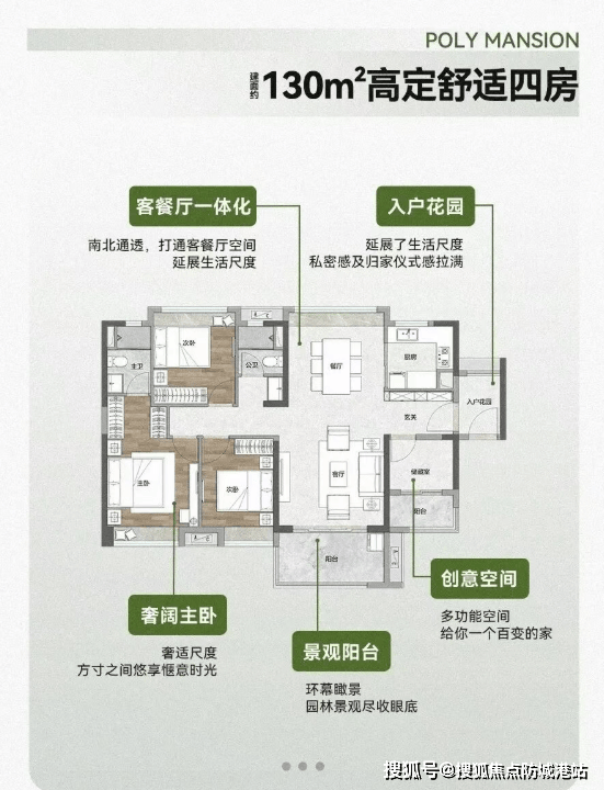 目前在售的主要是南区的产品,共有12栋32层的住宅,全部单位均朝南设计,确保户内全明采光。主力户型包括建面约95㎡三房、约125-130㎡四房以及138㎡四房双主套。特别值得一提的是138㎡的“楼王”户型,它采用了稀缺的双套间设计,并且拥有超6米宽的大阳台,实现了南北对流,通风采光俱佳。
