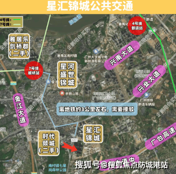 星汇锦城距离 7 号线板桥地铁站约 3 公里,步行通勤不现实,但项目已开通往返地铁站的接驳楼巴,20 分钟一班,10 分钟即可直达地铁站,完美解决 “最后一公里” 难题;日常也可选择骑电动车接驳,13 分钟左右便能抵达地铁站,对于地铁通勤族来说整体通勤效率尚可。自驾方面,项目虽不紧邻主干道,但通过兴业大道、金江大道可快速连通南大干线、新光快速,无论是去往万博 CBD,还是珠江新城、金融城等主城区,都能实现高效通达,适合有车一族的通勤需求。